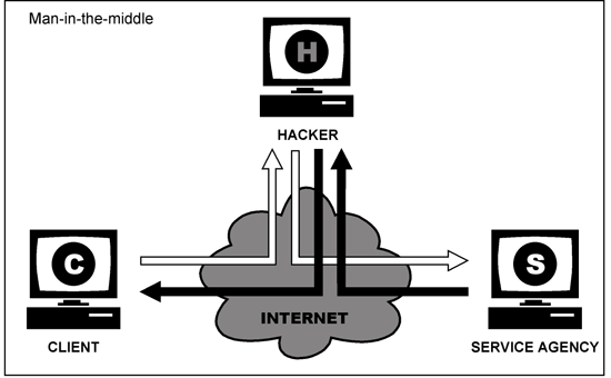 In informatica, un MITM ("uomo in mezzo" in Italiano) consiste nel frapporsi tra la comunicazione di due host, facendo credere ad essi di essere l'interlocutore legittimo e ottenendo la possibilità di leggere ed alterare il flusso di dati.